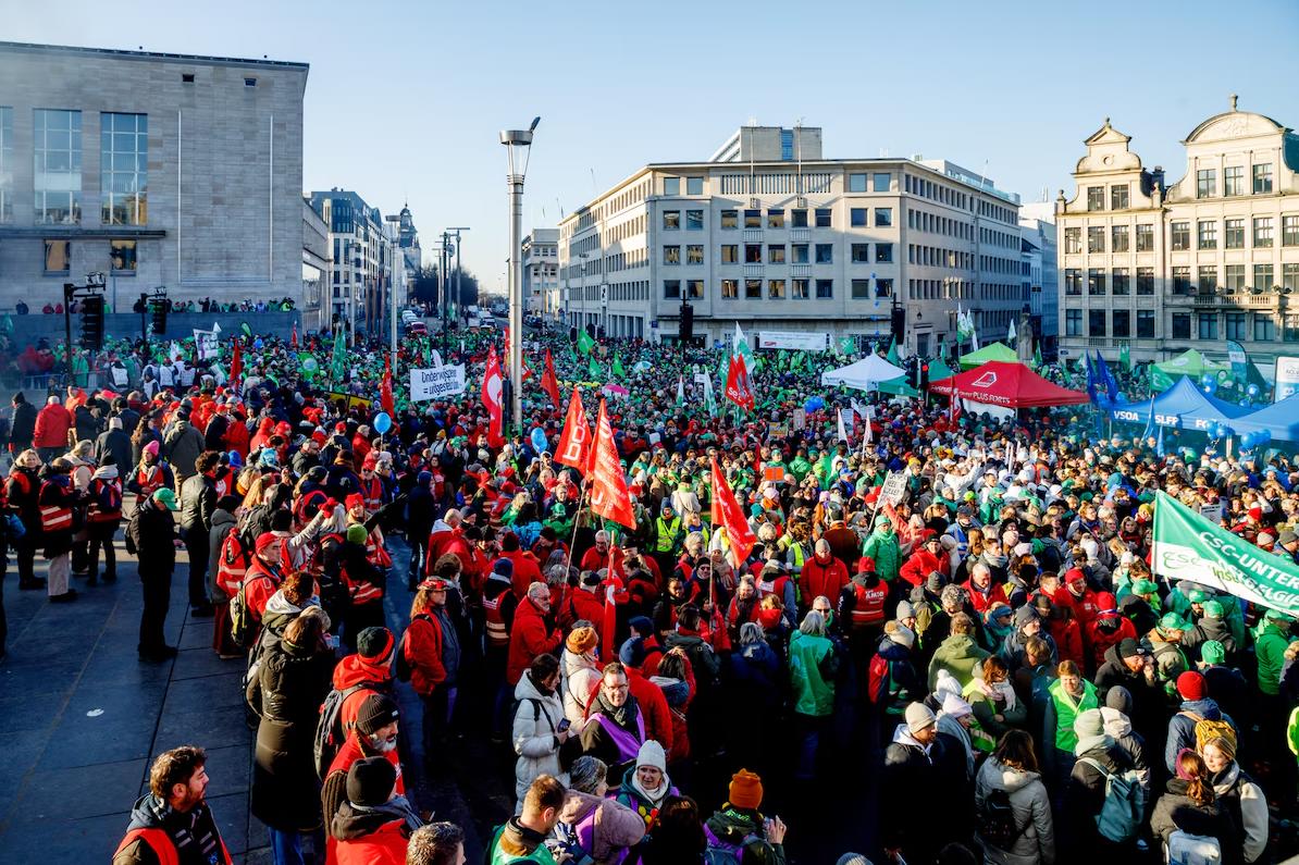 Єдність профспілок: Акцію організовують найбільші профспілки країни (ABVV-FGTB, ACV-CSC та CGSLB-ACLVB), які представляють інтереси працівників як приватного, так і державного секторів, що підкреслює єдність фронту проти урядової політики.